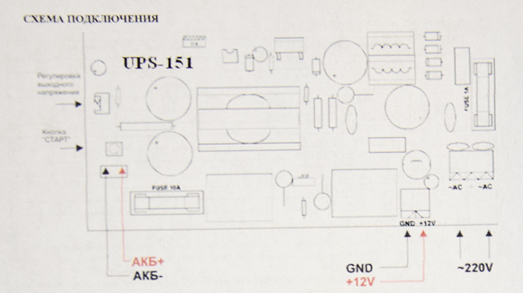 При необходимости включения источника питания без напряжения сети, при подключенном заряженном аккумуляторе нажмите на кнопку "СТАРТ".