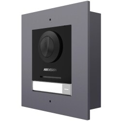 DS-KD8003-IME1 — главный блок дверной станции для контролированного прохода в помещения. Представляет из себя вызывную панель с IP-подключением. Оснащена монтажно-декоративной рамкой. Модульный терминал имеет качественную видеокамеру с HD-изображением, через которую осуществляется проверка посетителей. Работает в формате «Рыбий глаз», предоставляя хороший обзор территории. Также есть одна кнопка вызова абонента, с помощью которой производится звонок на домофон. Можно добавить название компании или номер квартиры. Присутствуют тревожные выходы. KD8003-IME1/Flush встраивается в стену, благодаря фирменному коробу. Антивандальный корпус предусматривает уличное использование. Доступно расширение другими устройствами.