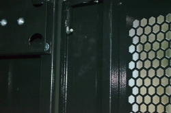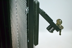 Дверь передняя: цельнометаллическая дверь с перфорацией 66% и замком с поворотной ручкой