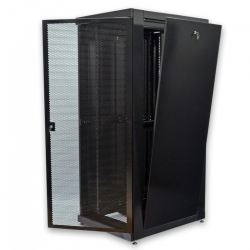 Серверный шкаф 19" 42U серии MGSE с цельнометаллическими дверьми с перфорацией предназначен для организации коммутационного узла в помещениях серверной и ЦОД с внешним охлаждением. Благодаря двум парам направляющих с лицевой и задней стороны и допустимой нагрузке в 500 кг, в шкафах на четыре точки крепления размещают оборудование, такое как серверы, блок бесперебойного питания повышенной ёмкости и полки глубиной более 450 мм. Двусторонняя конструкция позволяет как устанавливать оборудование с двух сторон, увеличивая высоту в юнитах в два раза, так и масштабировать сеть в будущем, например, в настенный шкаф на 18U можно установить только 18 патч-панелей, в напольный шкаф 18U устанавливается уже 36 панелей.