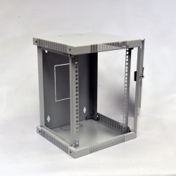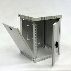 Коммутационный шкаф 8U формата 10 дюймов (25,4 см) предназначен для организации небольших сетевых узлов коммутации. Линейка шкафов представлена в трех основных величинах: 6U, 8U и 12U. Данный тип шкафов подходит для установки в квартире, доме, офисе и размещении внутри роутера, коммутатора, ИБП и патч-панели с витой парой от розеток. Для шкафов 10" представлен полный спектр дополнительных комплектующих: патч-панели, полки, блоки розеток 220В, кабельные органайзеры. Завести кабель в шкаф можно сверху, снизу и через заднюю стенку, что позволяет проложить кабель скрытым монтажом или в пластиковом кабель-канале. Отверстия кабельного ввода высечены в металле и демонтируются с помощью незначительного усилия. Для охлаждения активного сетевого оборудования предусмотрены перфорированные отверстия в верхней и нижней панелях шкафа, установить вентиляторы нет возможности.
