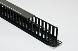 Организаторы 19″ различаются по высоте (1U и 2U) и глубине (одно- и двухсторонний). На 19 дюймовом основании предусмотрено два отверстия для ввода и укладки избыточной длины кабеля. На боковых стенках сделаны прорези, в количестве 12 или 24 штук, для укладки патч-кордов. В моделях на 24 отверстия, их ширина составляет 6 мм, что затрудняет укладку FTP кабеля категории 6а и выше.