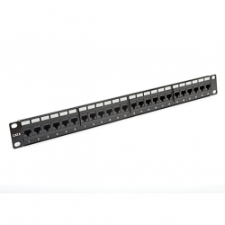 Патч-панель кат. 6 UTP устанавливается в серверный шкаф или стойку и используется для подключения витой пары со стороны точки коммутации с активным сетевым оборудованием. Установочная высота 1U в направляющие 19 дюймов на четыре точки крепления. Основание панели изготовлено из стали с пластиковыми вставками под коннекторы RJ-45. Подключение заземления не предусмотрено, патч-панель неэкранированная.