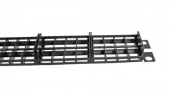 Во избежание затуханий рекомендуется использовать патч-панели с задним кабельным органайзером, это поможет избежать изгибов и заломов кабеля и упростить дальнейшее сервисное обслуживание, поскольку каждый кабель закреплен отдельно. При отсутствии заднего органайзера кабель фиксируется на основание панели один над одним, собираясь в пучок, перетянутый пластиковой стяжкой. Для обслуживания необходимо раскусить все стяжки и раздвинуть все кабеля, что с большой вероятностью приведет к появлению новых неисправностей.