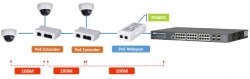 - Можно применять с PoE инжектором (PFT1200), возможность каскадного подключения на 2 PoE расширителя, макс расстояние передачи 300 м