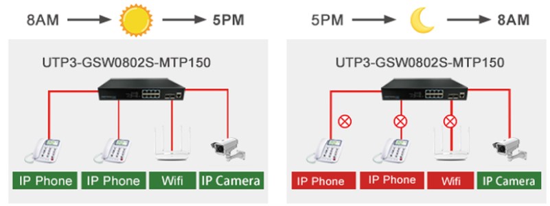 С графиком расписания PoE вы можете сэкономить энергию в нерабочее время для вашего офиса, дома.