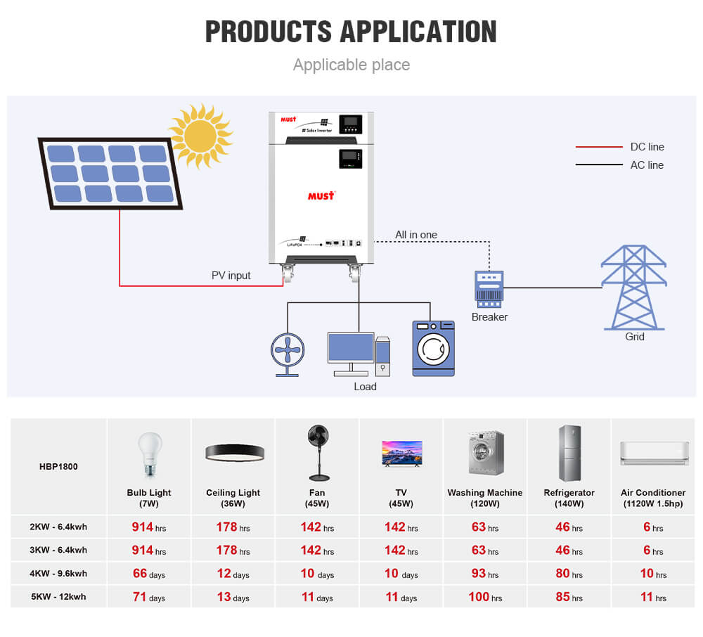 Системы хранения электроэнергии MUST НВР18-5248 HM MPPT являются отличным решением для обеспечения резервного питания для домашнего применения. Встроенная инверторная система с современным литий-железо-фосфатным (LiFePО4) аккумулятором, особенно в сочетании с солнечными батареями, образует единый узел для обеспечения автономного питания для вилл, квартир, офисов, магазинов и других мест, где требуется простое и надежное решение.