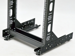 Однорамная серверная стойка 24U — это бюджетное решение для организации узла коммутации между активным и пассивным сетевым оборудованием формата 19". Упрощенная конструкция позволяет построить мобильный узел связи, который быстро сворачивается и перемещается. Такое решение подходит для конференций, семинаров, выставок, концертов, офисов. Отличие от двухрамных стоек заключается в отсутствии второй пары направляющих, что исключает установку оборудования на четыре точки крепления, например: серверов, полок длиной более 450 мм, источников бесперебойного питания. Для размещения патч-панелей, маршрутизаторов, видеорегистраторов, блоков розеток, кабельных органайзеров и другого оборудования с одной парой креплений данный тип стойки подходит.