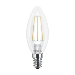 LED лампа MAXUS (filam), C37, 4W, теплый свет,E14 (1-LED-537-01)