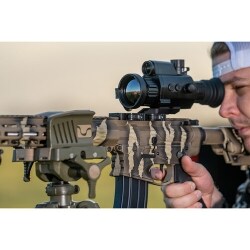 AGM Varmint LRF — компактный тепловизионный прицел, разработанный для круглосуточной работы в любых погодных и окружающих условиях. Доступен в нескольких конфигурациях: тепловизионный детектор 384x288 (50 Гц) или тепловизионный детектор 640x512 (50 Гц) и линза объектива 35 мм или 50 мм. Эти опции позволяют покупателю выбрать идеальное устройство для своих нужд. Объектив 35 мм предназначен для съемки на средних дистанциях, а объектив 50 мм лучше подходит для дальних столкновений. Оснащенный высокочувствительным тепловым детектором 12 мкм и OLED-монитором 1024×768, AGM Varmint LRF обеспечивает четкое изображение в суровых условиях окружающей среды, включая темноту, туман, дым, пыль, дождь, снег. Устройство можно использовать в качестве тепловизионного прицела или ручного монокуляра, а также в таких сценариях, как патрулирование, охота, статическое наблюдение и т. д. Встроенный лазерный дальномер AGM Varmint LRF предназначен для определения точного расстояния между наблюдателем и целью. Результаты измерений отображаются на мониторе осциллографа. Один аккумулятор 18650 обеспечивает до 4,5 часов непрерывной работы устройства. Внешний блок питания 5 В (аккумулятор) можно подключить через разъем USB-USB-C для увеличения времени работы. Устройство оснащено памятью EMMC для видеозаписи и захвата изображений. Также в комплект входит внутренний модуль Wi-Fi для потоковой передачи видео в реальном времени и записи видео/изображений через приложение.