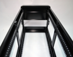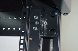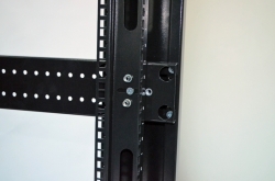 Конструкція має 8 приварених гайок для монтажу ніжок, розташованих в кутах вертикального елемента каркасу, що дозволяє встановити комутаційну шафу до серверної та відрегулювати горизонтальне положення. 8 кріплень необхідно для того, щоб можна було поставити шафи впритул (в одної ніжки ставляться по краях, у другої — ближче до середини). 4 ніжки входять до комплекту. Для монтажу коліс необхідно самостійно зробити отвори в елементі каркасу.