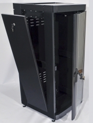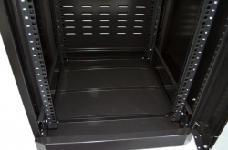 Серверна шафа 19” 28U серії MGSE із передніми дверима з каленого скла та задньою глухою дверцею, призначена для організації комутаційного вузла в офісних та серверних приміщеннях. Завдяки двом парам направляючих із лицьової та задньої сторони та допустимому навантаженню в 500 кг, у шафах є можливість розміщення обладнання на чотири точки кріплення, такого як сервери, блок безперебійного живлення підвищеної ємності та полиці глибиною понад 450 мм. Двостороння конструкція дозволяє як встановлювати обладнання з двох сторін, що збільшує висоту в юнітах у два рази, так і масштабувати мережу в майбутньому, наприклад, до настінної шафи на 18U можна встановити лише 18 патч-панелей, до підлогової шафи 18U встановлюється вже 36 панелей.